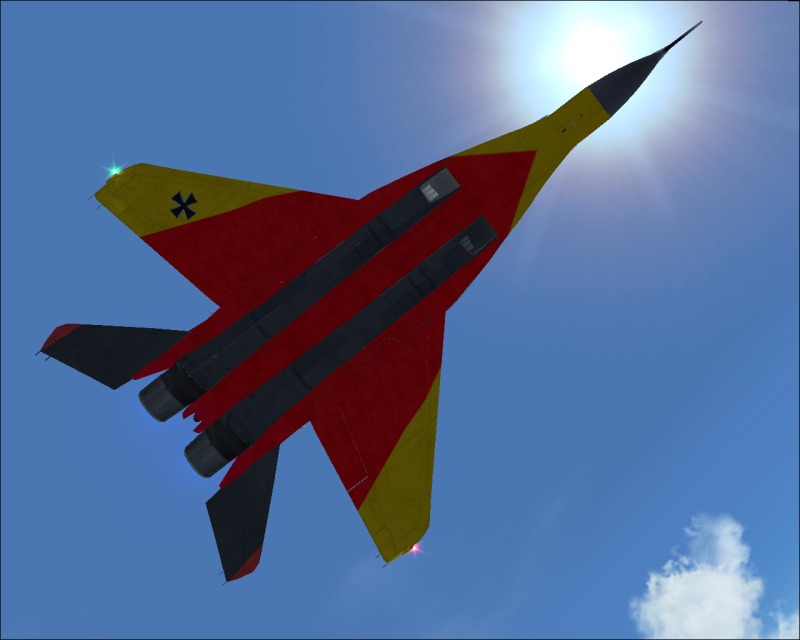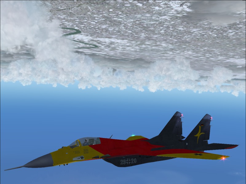 The Mig is great, but those colours. :-? Lets put it this way, the only place that would be camouflaged would be Jamaica. :D