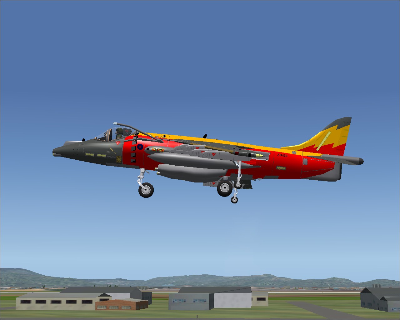 That would be the simgameit harrier, they have a few planes with this paint scheme, including a blackhawk heli.